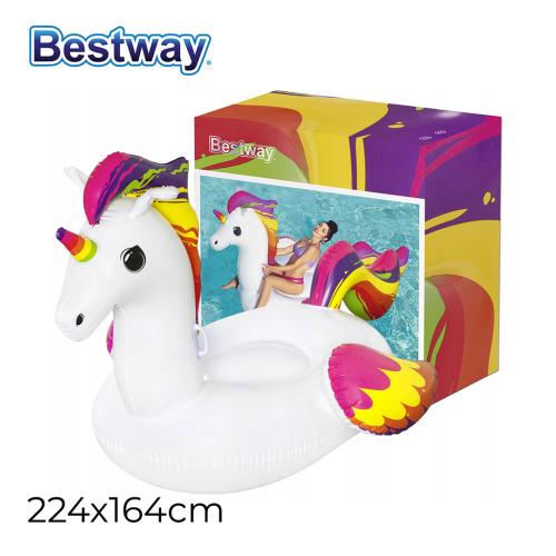 عوامة يونيكورن ضخمة من Bestway الأبعاد: 224 × 164 سم مناسبة للأطفال والكبار تصميم ضخم على شكل حصان يونيكورن رائع لالتقاط صور مميزة مصنوعة من PVC سميك عالي الجودة تتضمن رقعة إصلاح للطوارئ