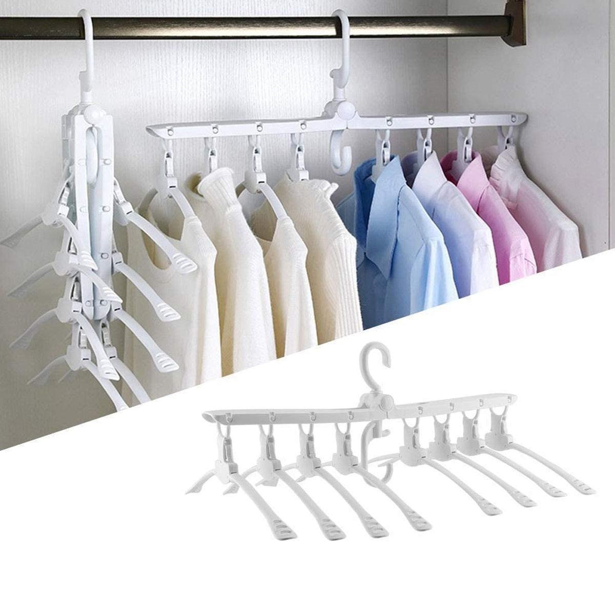 الخصائص: نظيف وسهل الاستخدام في المنزل يسمح بدخول المزيد من الهواء وأشعة الشمس يحتوي على ثمانية قطع (8 قطع) خزانة تخزين موفرة للمساحة زر للضغط لجمع الملابس بسهولة دون إتلافها تصميم أكتاف عريض مانع للانزلاق لتجفيف الملابس بدون تجاعيد إضاءة متساوية مع دوران 360 درجة في شكل متغيّر الخزانة مزدوجة الوجه أكثر ترتيباً المواصفات: المادة: ABS اللون: أبيض / أزرق الحجم: 52.5 × 42 سم