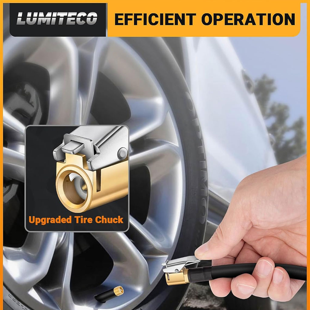 تحقق من ضغط إطاراتك وقم بنفخ كل شيء بسهولة – من الكرات إلى العوامات. بفضل مقياس الضغط الدقيق، تحافظ على ثبات النفخ حتى 150 PSI، مما يجعلها مثالية للسيارات، الدراجات النارية، وغيرها من المنتجات القابلة للنفخ.