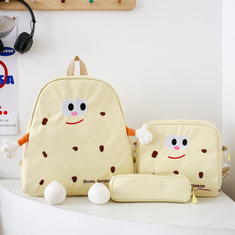 Ensemble de sacs d’école Kawai pour adolescents 3Pcs Language Jaune – محفظة 3 قطع كاواي أصفر