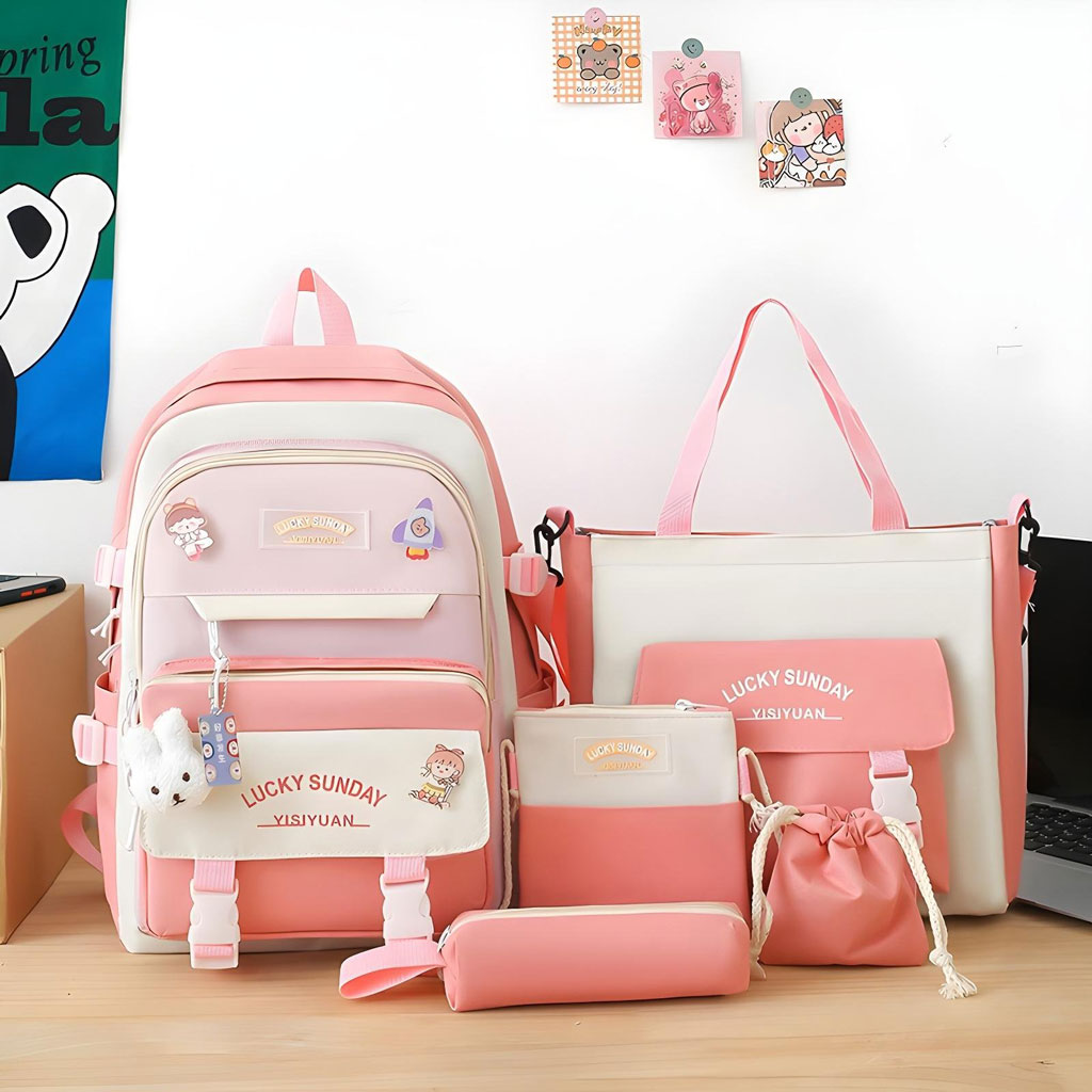 Ensemble de sacs d’école Kawai pour adolescents 5Pcs Xin Pin Shang Rose – محفظة 5 قطع كاواي وردي