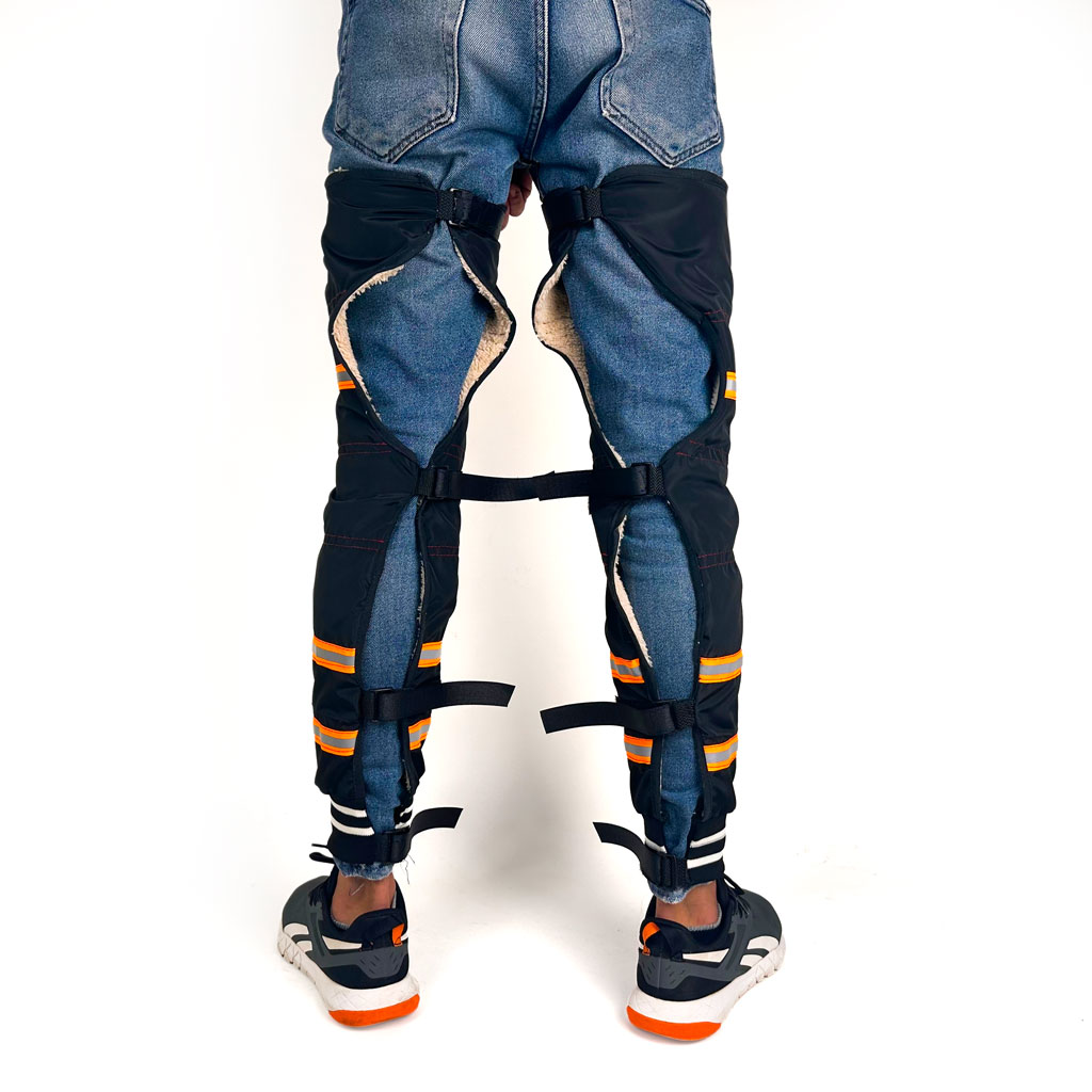 واقيات الأرجل – مصنوعة من قماش نايلون مقاوم للماء، تحمي من الأمطار الخفيفة والرياح القوية، مما يمنح الدفء والراحة. بطانة داخلية متينة تحتفظ بالحرارة بكفاءة، وتصميم 360 درجة يمنح عزلًا حراريًا ممتازًا. الحواف المطاطية تمنع الانزلاق، والسحّاب المزود بدعامة مزدوجة يضمن ثباتًا محكمًا.