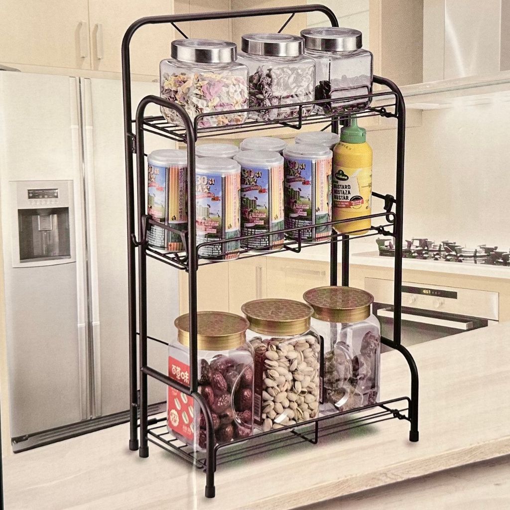 رف تخزين 3 طوابق حل عملي وفعّال لترتيب وتنظيم أغراضك في المطبخ، الحمام، غرفة الغسيل أو الخزانة. تصميمه الأنيق باللون الأسود وهيكله المتين يجعلان منه قطعة مثالية لأي ديكور، مع سهولة في التركيب وتوفير للمساحة.