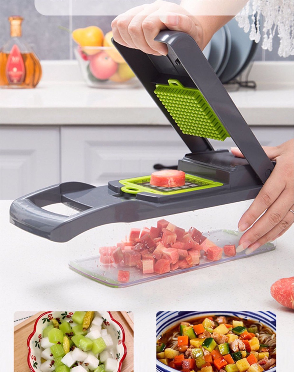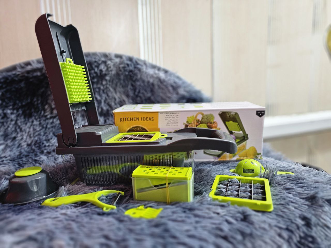 Hachoir à légumes multifonctionnel 14in1 , trancheur, mandoline, hachoir à oignons pour oignon, pomme de terre, tomate, concombre, carotte