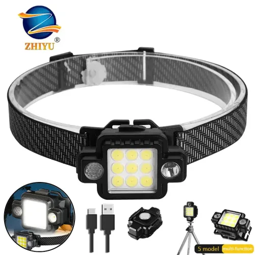 Lampe frontale Portable COB+XPG multifonctionnelle magnétique USB TYPE-C