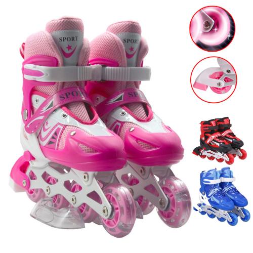 حجم قابل للتعديل: استخدم التصميم المزود بزر ضبط سهل لتحديد المقاس الأنسب لك، فقط اضغط مع الاستمرار على الزر واسحب مقدمة الحذاء لتعديل الحجم مع نمو طفلك. مريح وناعم: مصنوع من مادة PP عالية الجودة، شبكة داخلية، جلد PVC ورغوة EPE لتوفير قيادة سلسة وثابتة وصامتة مع إطار ألمنيوم معزز. عجلات PU مع محامل ABEC 7 مزدوجة الحماية توفر انزلاقًا مريحًا. إضاءة قوس قزح: جميع العجلات تضيء أثناء التزلج، مما يضفي تجربة ممتعة للأطفال بدون بطاريات بفضل الإضاءة الذاتية الملونة. مشبك أمان: مزود بأربطة تقليدية وأشرطة V وحماية ثلاثية بمشبك عالي القوة لتعزيز الأمان، جودة ممتازة ودعم مثالي للمبتدئين دون الحاجة لربط الأربطة يدويًا. هدية مثالية: حذاء تزلج قابل للتعديل يمنح الأطفال توازنًا أفضل وتحكمًا أكبر أثناء اللعب، هدية رائعة لأعياد الميلاد أو العطل أو المناسبات الخاصة.