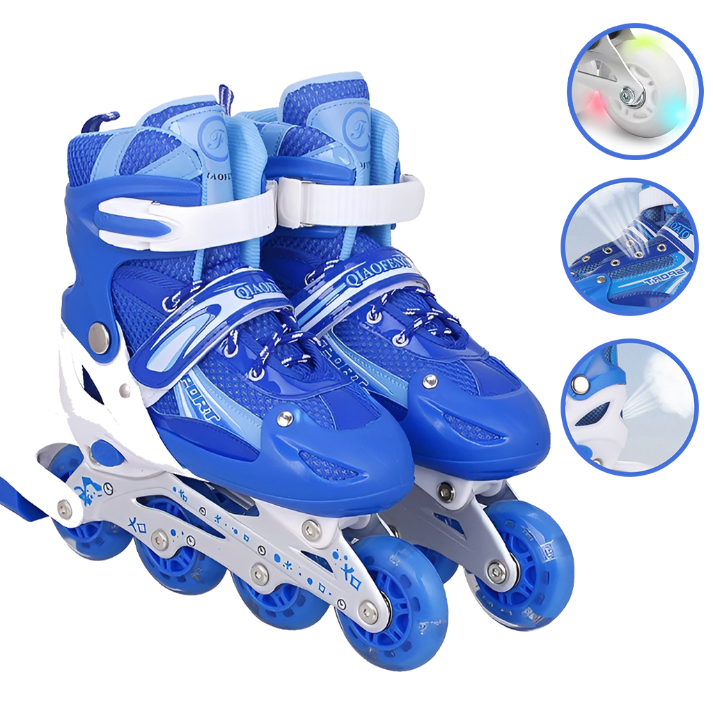 حجم قابل للتعديل: استخدم التصميم المزود بزر ضبط سهل لتحديد المقاس الأنسب لك، فقط اضغط مع الاستمرار على الزر واسحب مقدمة الحذاء لتعديل الحجم مع نمو طفلك. مريح وناعم: مصنوع من مادة PP عالية الجودة، شبكة داخلية، جلد PVC ورغوة EPE لتوفير قيادة سلسة وثابتة وصامتة مع إطار ألمنيوم معزز. عجلات PU مع محامل ABEC 7 مزدوجة الحماية توفر انزلاقًا مريحًا. إضاءة قوس قزح: جميع العجلات تضيء أثناء التزلج، مما يضفي تجربة ممتعة للأطفال بدون بطاريات بفضل الإضاءة الذاتية الملونة. مشبك أمان: مزود بأربطة تقليدية وأشرطة V وحماية ثلاثية بمشبك عالي القوة لتعزيز الأمان، جودة ممتازة ودعم مثالي للمبتدئين دون الحاجة لربط الأربطة يدويًا. هدية مثالية: حذاء تزلج قابل للتعديل يمنح الأطفال توازنًا أفضل وتحكمًا أكبر أثناء اللعب، هدية رائعة لأعياد الميلاد أو العطل أو المناسبات الخاصة.