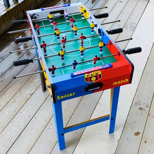 طاولة كرة قدم (فوزبول) للأطفال والكبار الارتفاع: 62 سم مع 4 أرجل ثابتة. المقابض: مريحة ومضادة للانزلاق بتصميم مريح للتحكم الدقيق. أرضية اللعب: عريضة وناعمة لضمان حركة سلسة للكرة وسرعة عالية في اللعب. اللاعبون: 18 لاعبًا (6 صفوف × 3 لاعبين) بقدرة دوران 360° + كرتان للعبة. التصميم: مثالية لغرف الألعاب، الطوابق السفلية، أو استراحة المكتب. المواصفات: المادة: MDF الأبعاد: 69×37×62 سم (27×14.5×24.4 بوصة) الوزن: 6 كغ