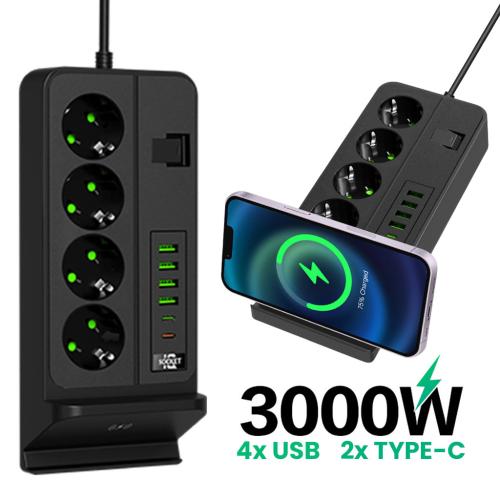 Multiprise 3000W 4 Prises, 4 Ports USB, 2 Ports Type-C avec Charge Sans Fil – مقبس طاقة مع شحن لاسلكي