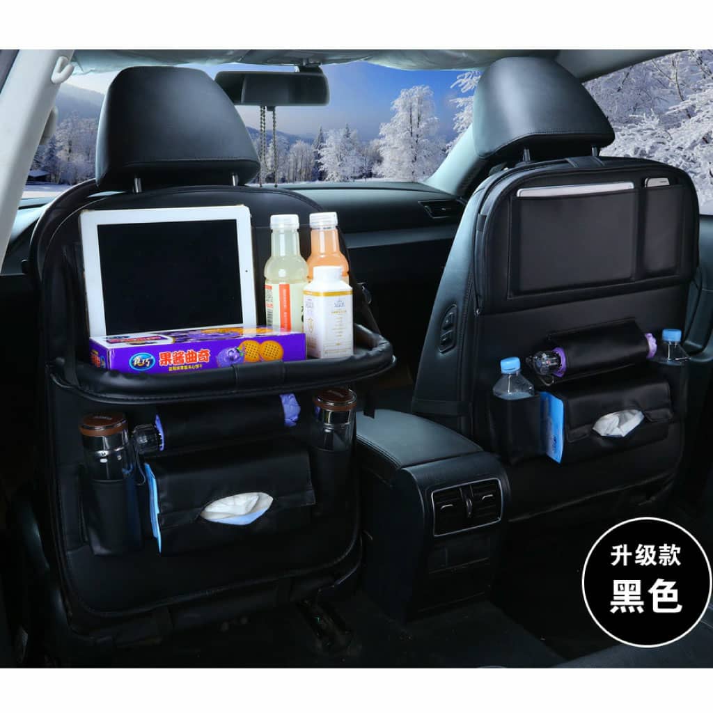 منظّم للسيارة مصنوع من الجلد متوفر باللون الأسود ليناسب جميع السيارات. مناسب لحفظ أغراض الأطفال مرتبة وآمنة. حجم عملي وسهل التركيب والإزالة. سهل التنظيف. الأبعاد: 60×47 سم.