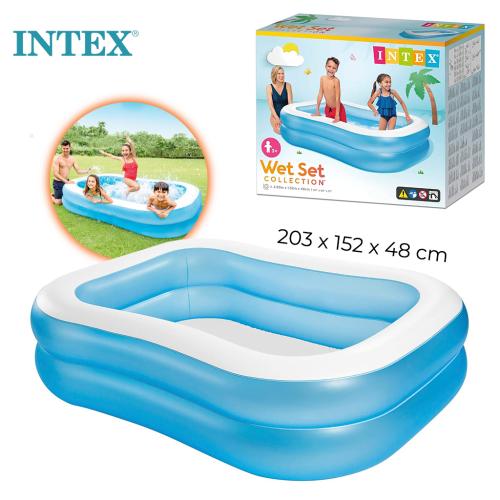 مسبح أطفال قابل للنفخ من Intex مسبح نفخ Intex يوفر ساعات من المرح المائي في المنزل. مصنوع من بلاستيك سميك ومتين لتحمل الاستخدام الخارجي. الأبعاد: 203 × 152 × 48 سم السعة: 540 لتر الألوان: أزرق فاتح وأبيض الفئة العمرية: +3 سنوات مثالي للشرفات والتراسات