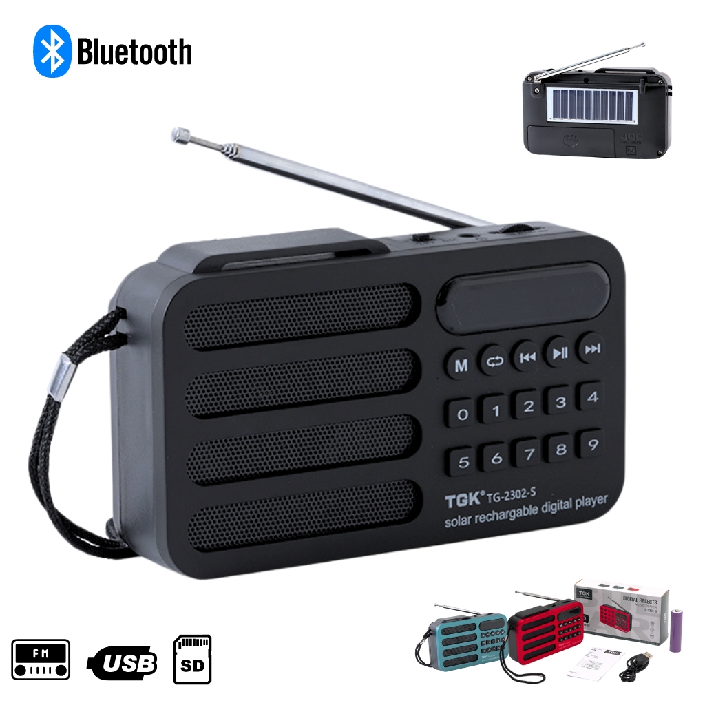 راديو صغير قابل لإعادة الشحن مع شحن بالطاقة الشمسية