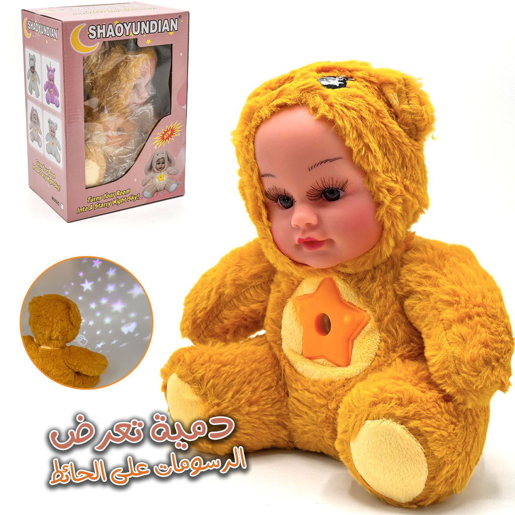 دمية Magic للنوم الهادئ للأطفال إسقاط ضوئي مهدّئ على الجدران برسومات نجوم وألوان مريحة. تساعد الطفل على النوم بسرعة وتهدّئ قلقه ليلاً. خامات ناعمة وضوء لطيف لجو مريح وآمن. مثالية لإضفاء أجواء دافئة وضمان نوم عميق للأطفال.