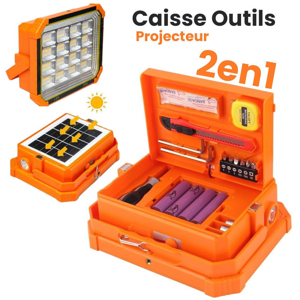 Projecteur LED Solaire Rechargeable 4000 mAh 10000 Lumens avec Kit Outils – مصباح بالطاقة الشمسية وعلبة أدوات مهنية 2في1