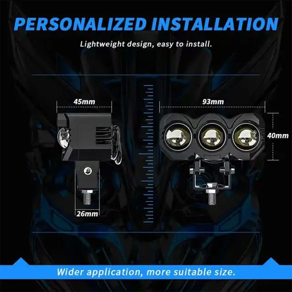 Projecteur Universel LED à 3 lentilles Pour Vélo et Moto