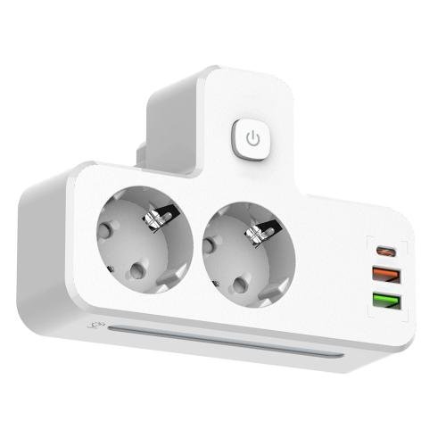 Rallonge Mural Multifonction – 2 Prises Européennes, 3 Ports USB (dont USB-C) et Lumière LED – مقبس طاقة