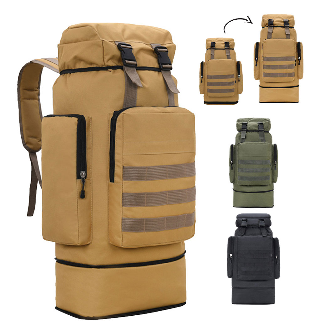 حقيبة ظهر تخييم مقاومة للماء – سعة 70 لتر قماش أوكسفورد مقاوم للماء: حماية من الأمطار والظروف الصعبة. مساحة واسعة: أبعاد 73(+14)×35×22 سم بتصميم متعدد المقصورات يكفي لرحلة أسبوعية. راحة وتهوية مثالية: أحزمة كتف وظهر مبطنة بإسفنج ومسند ظهر شبكي مهوّى لتقليل الحرارة. تصميم خفيف بدون إطار داخلي: أحزمة كتف على شكل S مدعمة لتوزيع الحمل وتجربة حمل مريحة. .