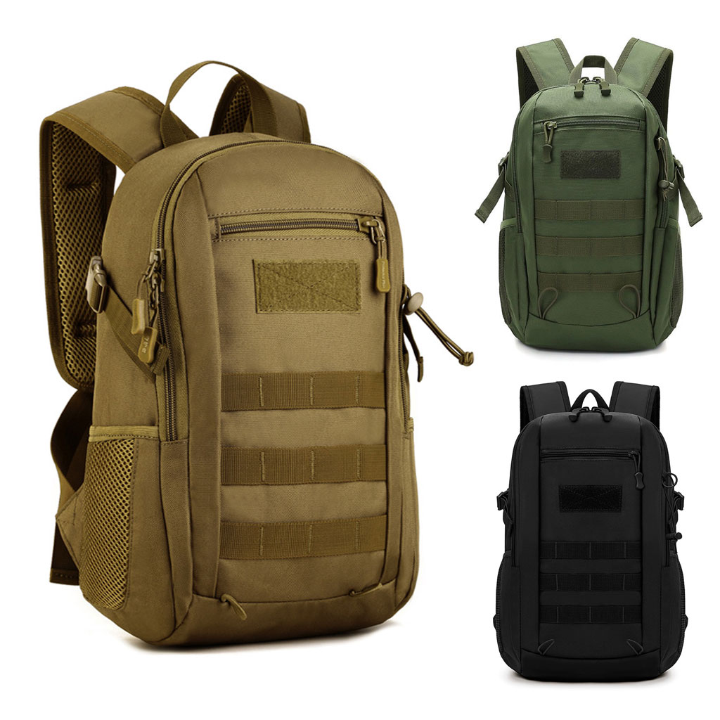 حقيبة ظهر تكتيكية صغيرة مقاومة للماء – 12 لتر خامات قوية: قماش نايلون 900D مطلي بـ PVC مع سحابات YKK مقاومة للماء وسهلة التنظيف. تصميم متعدد الجيوب: جيب أمامي بسحاب، جيوب جانبية شبكية، حجرة رئيسية تسع كمبيوتر محمول 12 بوصة. أحزمة قابلة للتعديل: طول يصل إلى 70 سم لتناسب مختلف المستخدمين. نظام MOLLE خارجي: لتوسيع السعة وتثبيت الملحقات الإضافية. استخدامات واسعة: مثالي للصيد، الرحلات القصيرة، المدرسة، التنزه والسفر.