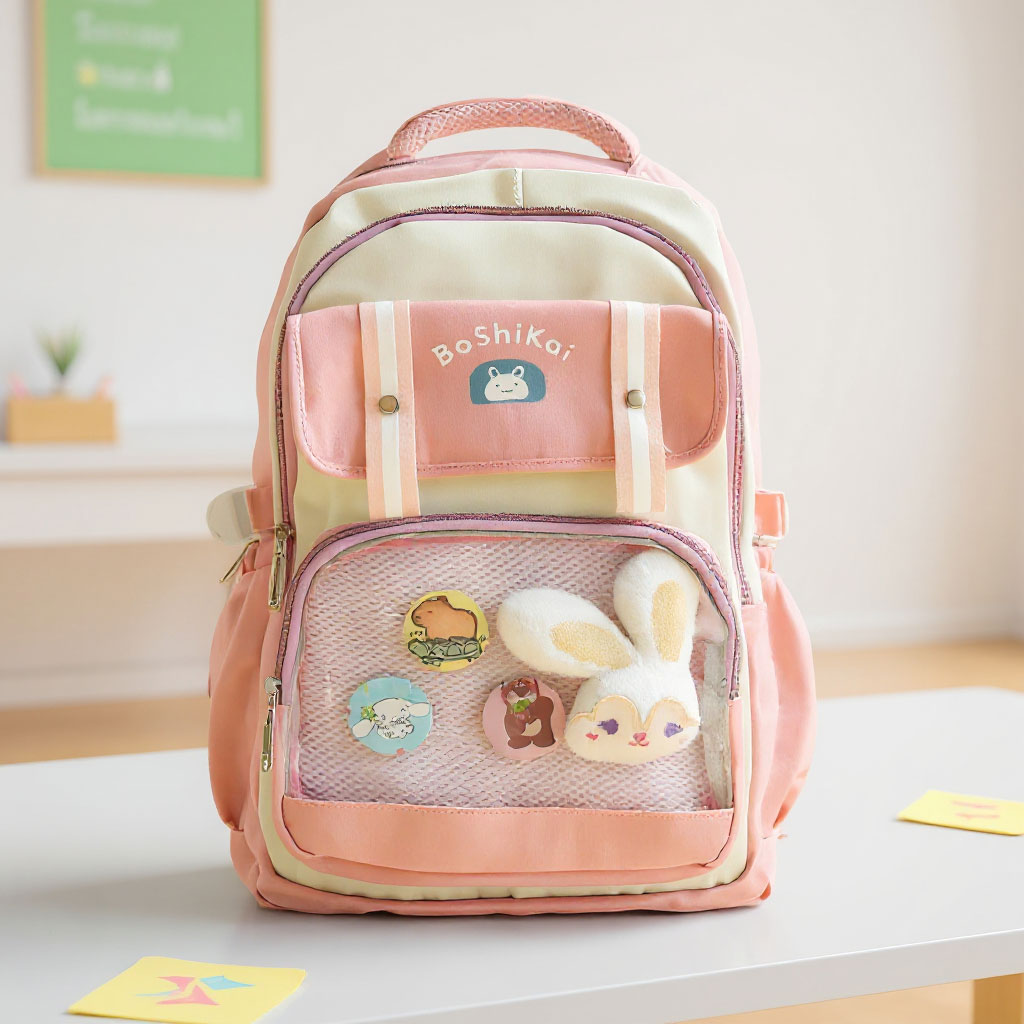 Sac à Dos Scolaire pour Enfants Style Kawaii BoShiKai Rose – حقيبة ظهر مدرسية للأطفال وردي