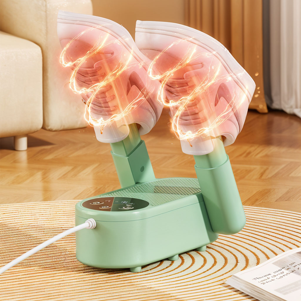 تصميم قابل للطي: بزاوية 90 درجة لتعديل وضعية المجفف وفق شكل الحذاء وحجمه ومنع التشوّه أثناء التجفيف.