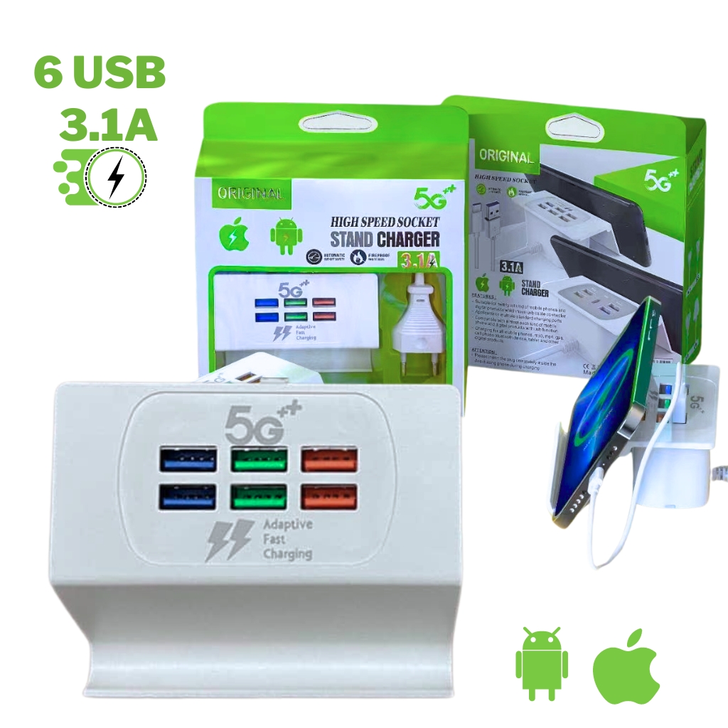 محطة شحن USB سريعة مع 6 مخارج بتيار أقصى 3.1 أمبير.