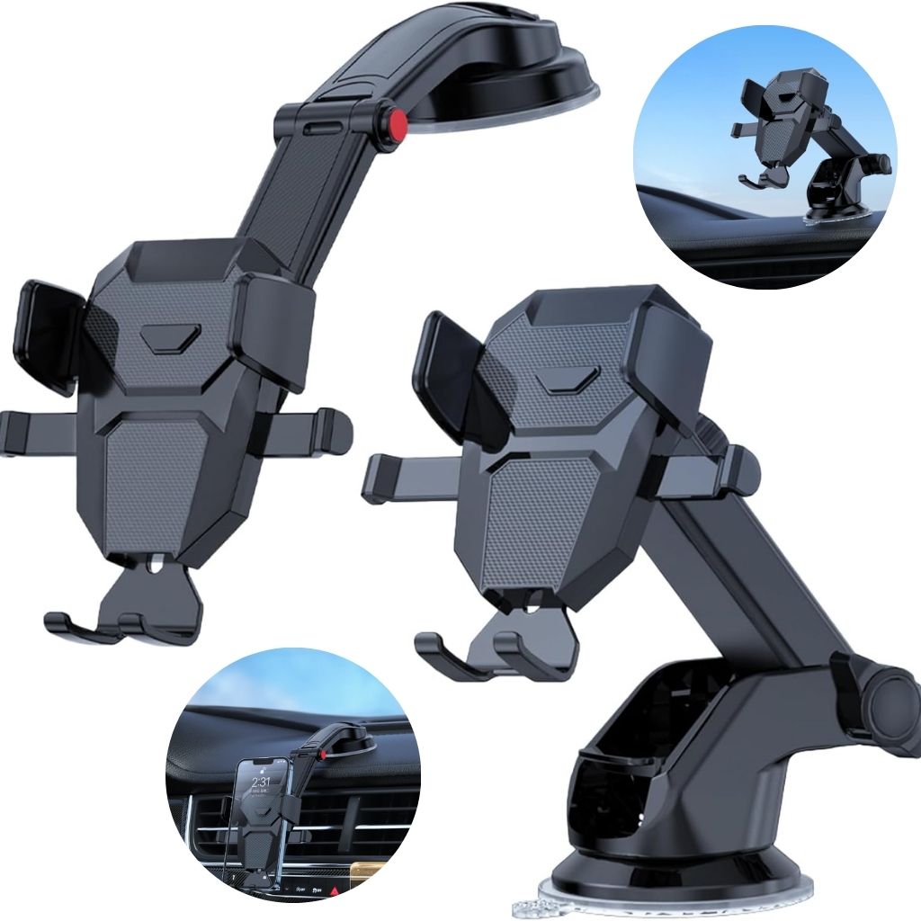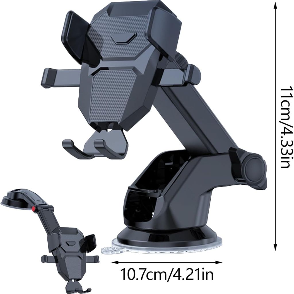 🧲 قاعدة شفط قوية : مزودة بآلية تثبيت أوتوماتيكية تضمن ثباتًا مثاليًا على الزجاج الأمامي أو لوحة القيادة.
