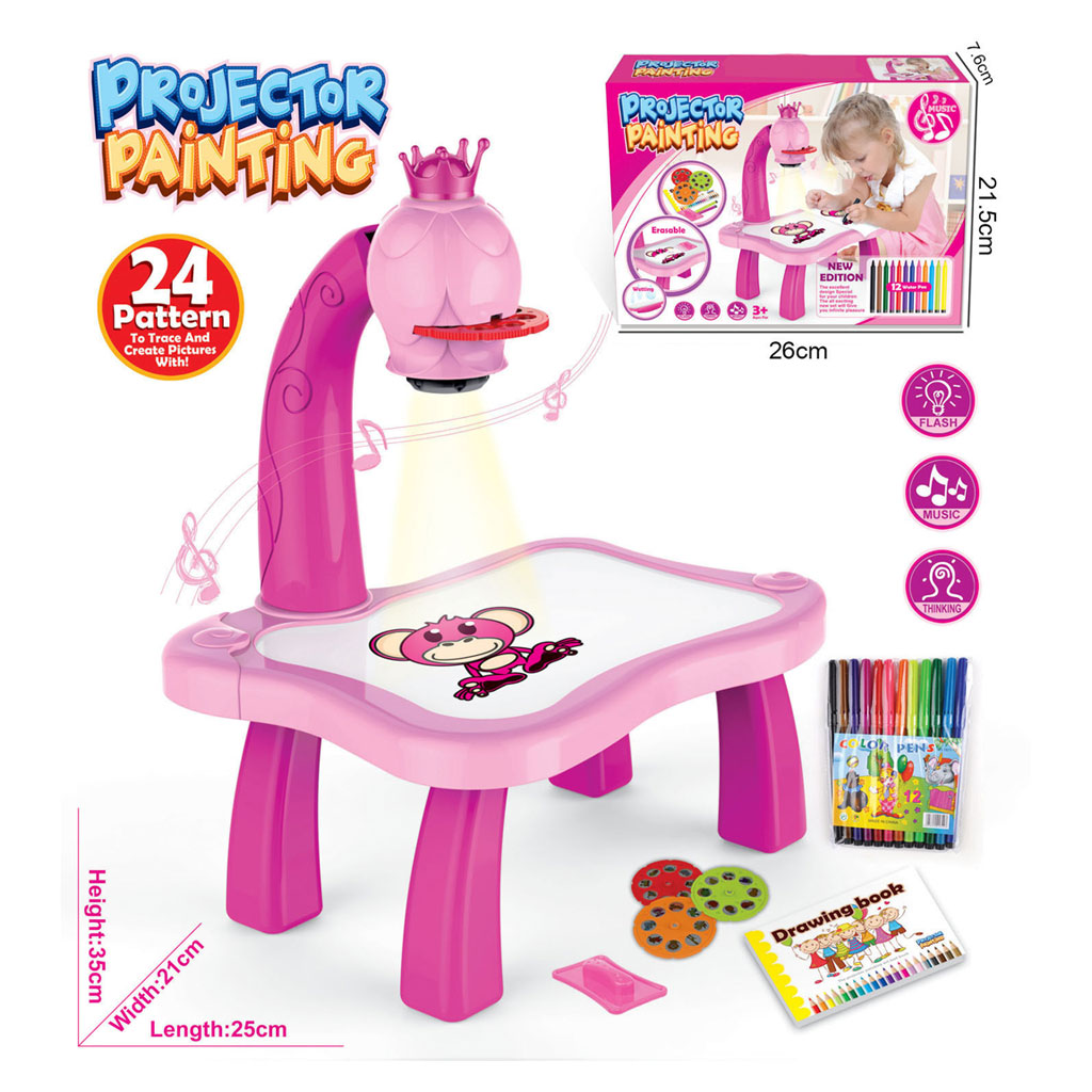 بروجكتور أطفال بتصميم زرافة للرسم والتلوين ألوان مشرقة ودافئة تجذب الطفل لساعات من اللعب الإبداعي يعمل بثلاث بطاريات AA (غير مشمولة) يتضمن 6 شرائح بعدسات إسقاط تحتوي على 36 صورة مختلفة يمكن الرسم مباشرة على طاولة البروجكتور ومسح الصور بالإسفنجة المرفقة يحسّن مهارة اليد والأصابع ويعزز الخيال والإبداع يمكن عرض الرسومات النهائية على ورق خارجي أو تعليقها كديكور المحتويات: طاولة مزودة ببروجكتور 6 شرائح عرض إسفنجة دفتر رسم 12 قلم تلوين مادة الصنع: بلاستيك العمر المناسب: 3 سنوات فأكثر الأبعاد: 25×21×35 سم (ارتفاع المنصة 13 سم)