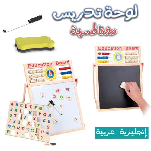 المواصفات: لوح مزدوج الجهتين: سبورة بيضاء وسبورة سوداء. مزود بحاسبة خرز (عداد) لتعليم العد. يأتي مع طباشير وممحاة. يمكن الكتابة على اللوح الأبيض بأقلام خاصة أو تثبيت الحروف/الأرقام المغناطيسية. يمكن الكتابة على اللوح الأسود بالطباشير. النوع: لعبة تعليمية (سبورة للأطفال). المادة: خشب. المميزات: مغناطيسية، مزدوجة الوجه، تعليمية، هدية مثالية لعيد الميلاد. الحجم: 39 × 47 سم. مساحة الكتابة: 32 × 32 سم. محتويات العبوة: سبورة واحدة ممحاة واحدة قلم ماركر واحد علبة طباشير واحدة 5 ملصقات لرموز العمليات الحسابية 26 ملصق لحروف اللغة الإنجليزية 28 ملصق لحروف اللغة العربية 20 ملصق لأرقام